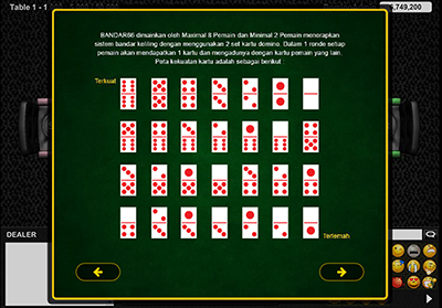 Dalam permainan baru ini ada dua peraturan baru yang diterapkan, adapun peraturan tersebut adalah yang pertama jika kartu yang anda miliki sama tingginya dengan bandar anda maka yang memenangkannya adalah bandar, dan yang kedua adalah jika anda mendapatkan kartu double 6/6 dan kartu double 5/5 maka anda akan dibayar dua kali lipat oleh bandar. jika anda masih binggung diatas admin telah menyediakan gambar yang dapat membantu anda.