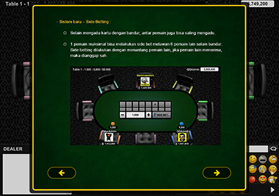 Setelah anda melakukan login menggunakan user name dan password anda, klik di bagian "PLAY POKER Rupiah-" atau "PLAY POKER Andorid/iphone/ipad-". Kemudian akan muncul sebuah kolom dimana anda bisa memilih di LINE mana anda akan bermain. Setelah proses tersebut anda hanya perlu memilih di meja taruhan mana anda ingin bermain.Aturan Bermain